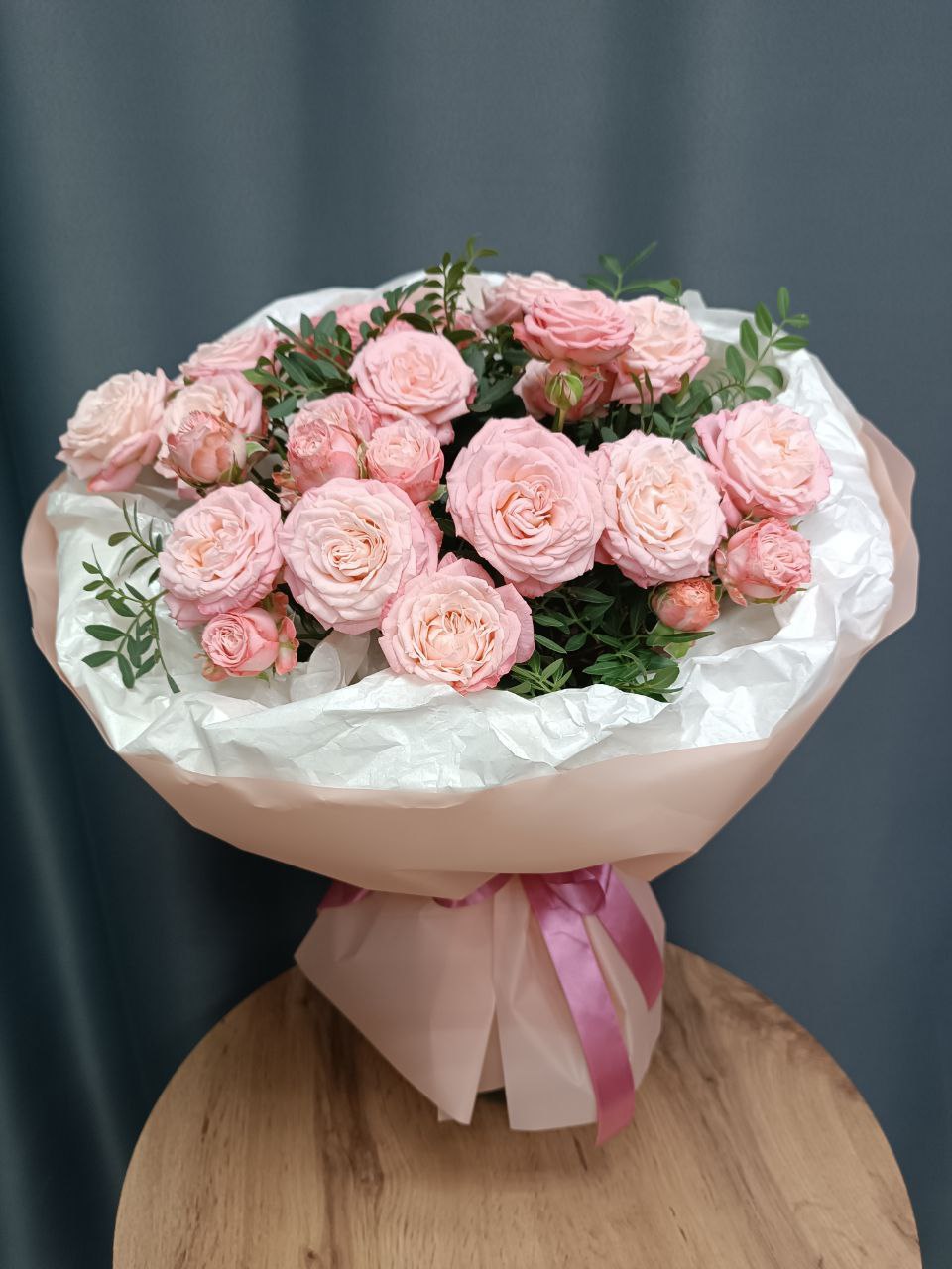 Каждый букет уникален, поэтому его оттенки и декор могут незначительно отличаться от фото. Наш флорист с радостью поможет подобрать идеальный состав и уточнит наличие цветов для вашего заказа.