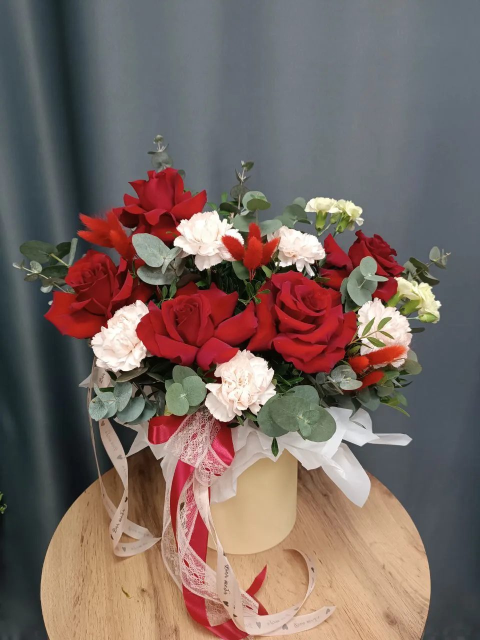 Каждый букет уникален, поэтому его оттенки и декор могут незначительно отличаться от фото. Наш флорист с радостью поможет подобрать идеальный состав и уточнит наличие цветов для вашего заказа.