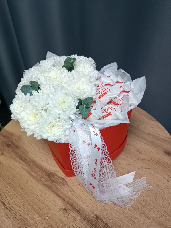 коробкак хризантема кустовая эвкалипт конфеты