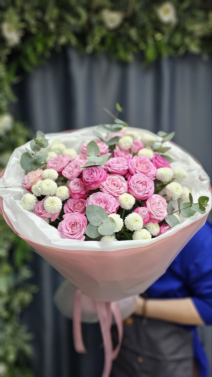 Каждый букет уникален, поэтому его оттенки и декор могут незначительно отличаться от фото. Наш флорист с радостью поможет подобрать идеальный состав и уточнит наличие цветов для вашего заказа.