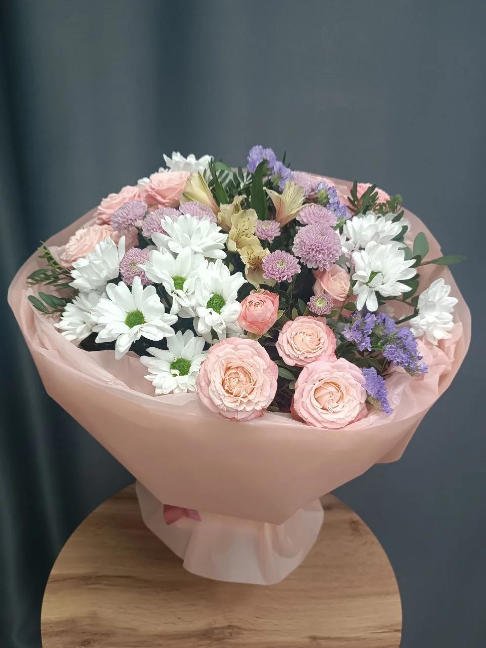 Каждый букет уникален, поэтому его оттенки и декор могут незначительно отличаться от фото. Наш флорист с радостью поможет подобрать идеальный состав и уточнит наличие цветов для вашего заказа.