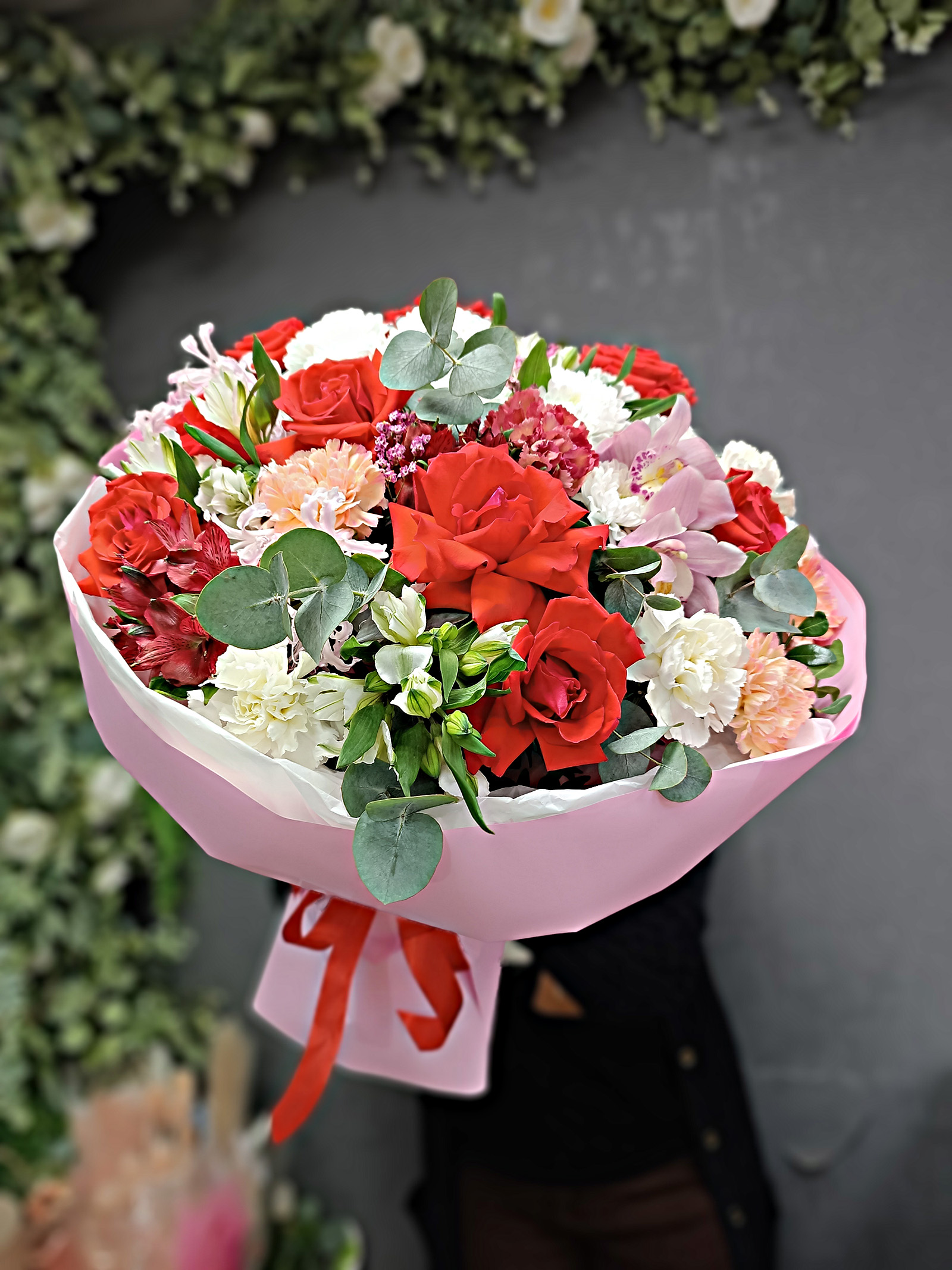 Каждый букет уникален, поэтому его оттенки и декор могут незначительно отличаться от фото. Наш флорист с радостью поможет подобрать идеальный состав и уточнит наличие цветов для вашего заказа.