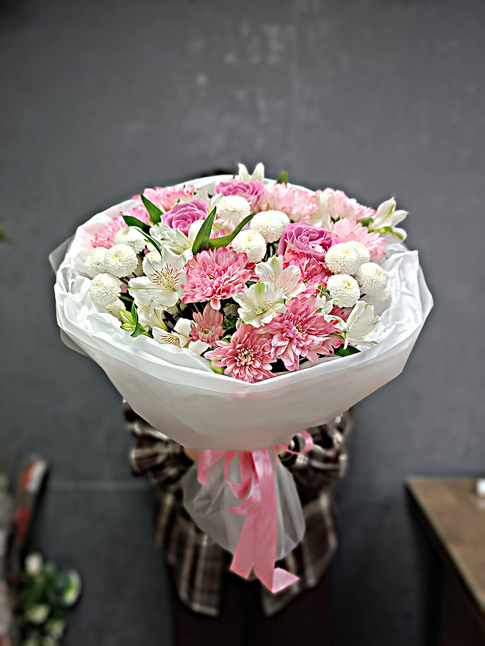 Каждый букет уникален, поэтому его оттенки и декор могут незначительно отличаться от фото. Наш флорист с радостью поможет подобрать идеальный состав и уточнит наличие цветов для вашего заказа.