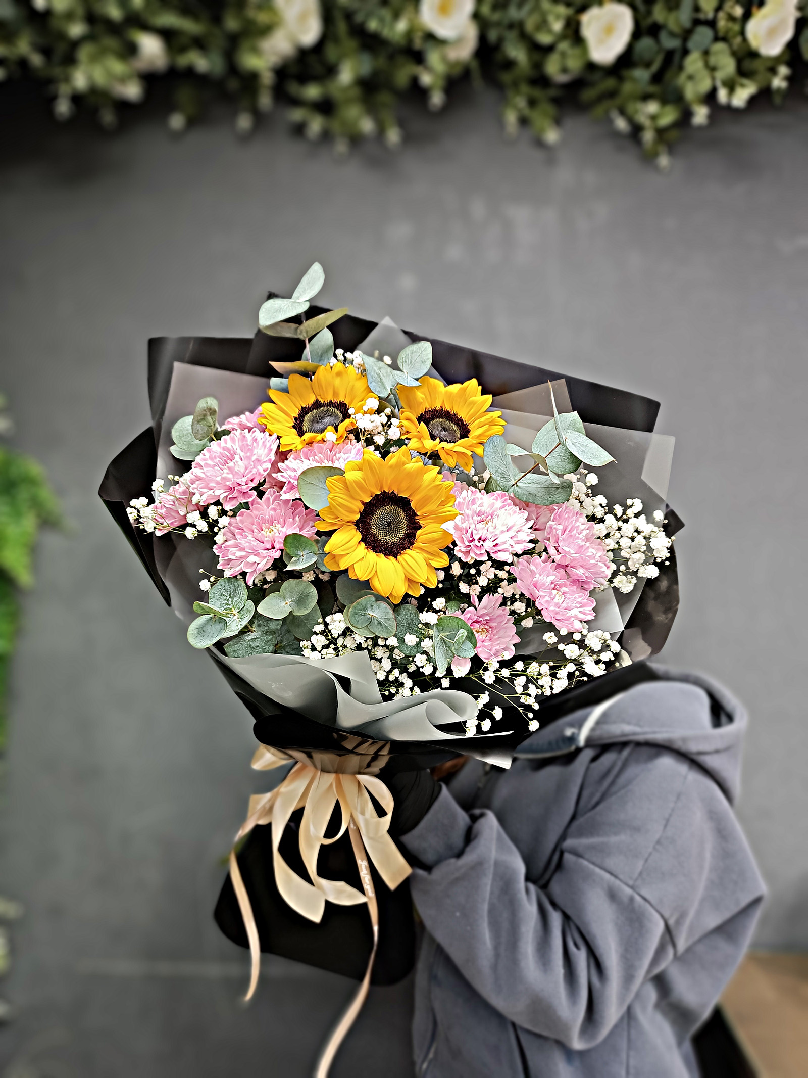 подсолнух хризантема кустовая гипсофила эвкалипт оформление