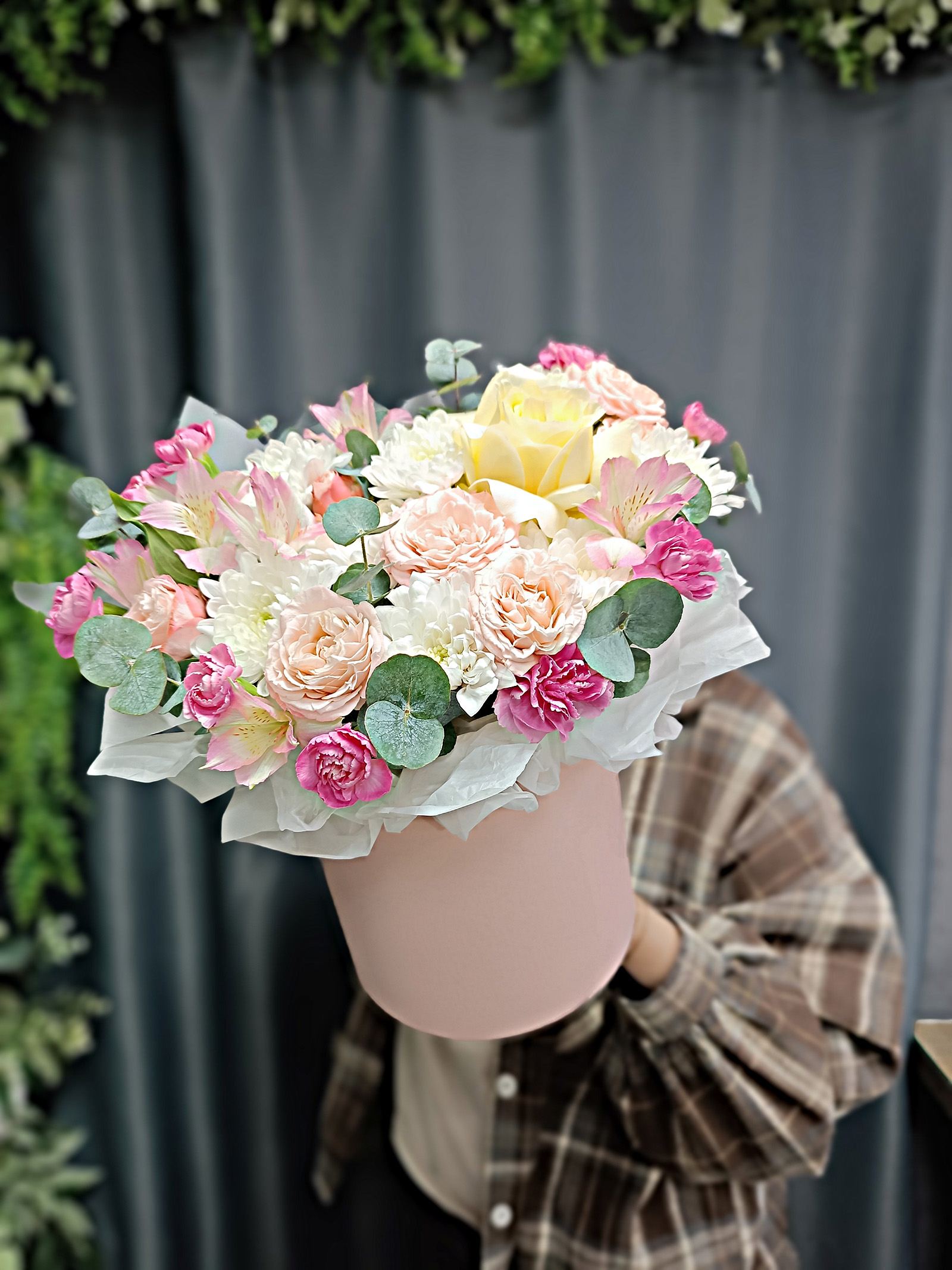 Каждый букет уникален, поэтому его оттенки и декор могут незначительно отличаться от фото. Наш флорист с радостью поможет подобрать идеальный состав и уточнит наличие цветов для вашего заказа.